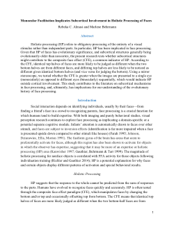 Monocular Facilitation Implicates Subcortical Involvement in Holistic Processing of Faces